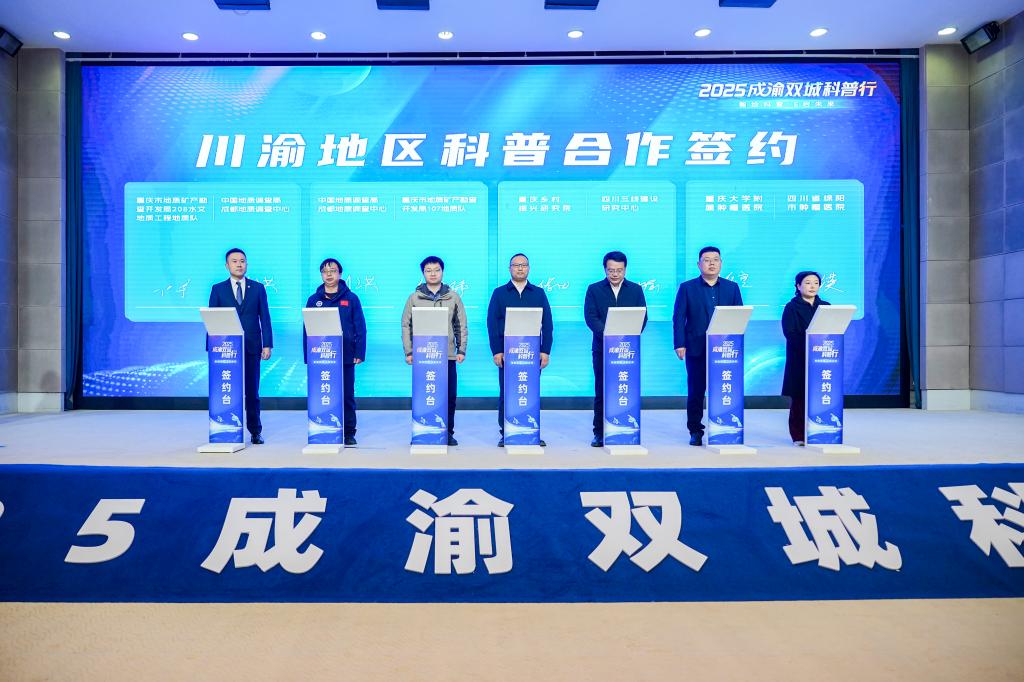 调研期间,副校长张旭辉、科研处负责人还在重庆科技馆参加了由重庆市科学技术局、四川省科学技术厅共同主办的“智绘科普 E启未来——2025成渝双城科普行”启动仪式暨交流座谈会。会上,川渝两地13家科普阵地围绕乡村振兴、医疗卫生、产科教协同等领域集中签署了7项重要合作协议,其中,我校“四川三线建设研究中心”与重庆文理学院“重庆乡村振兴研究院”将围绕4大方面内容,共同探索“三线建设工业遗产保护利用”与“乡村振兴创造性转化”的融合路径,共同打造在川渝地区乃至全国具有影响力的文化传承与创新实践平台。