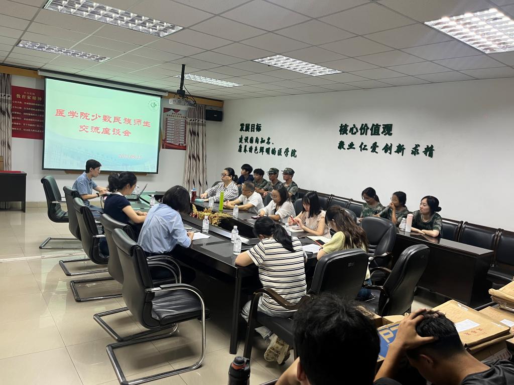 最后,王鹃在总结讲话中指出,少数民族师生是学院发展的重要力量,学院将始终以“用心用情用力”为准则,从三方面深化服务:一是完善“学业-生活-职业”全周期支持体系,通过各种形式将各民族同学联系起来,建立少数民族学生档案;二是搭建“文化互鉴”平台,通过座谈会、医学人文讲座等活动促进多元文化融合;三是强化“党建引领+结对帮扶”机制,推动领导干部、党员教师与少数民族学生“一对一”结对,切实解决实际困难。她寄语全体师生:“各民族同胞要像石榴籽一样紧紧相拥,以医者仁心践行使命,以团结奋斗共筑医学梦想。”